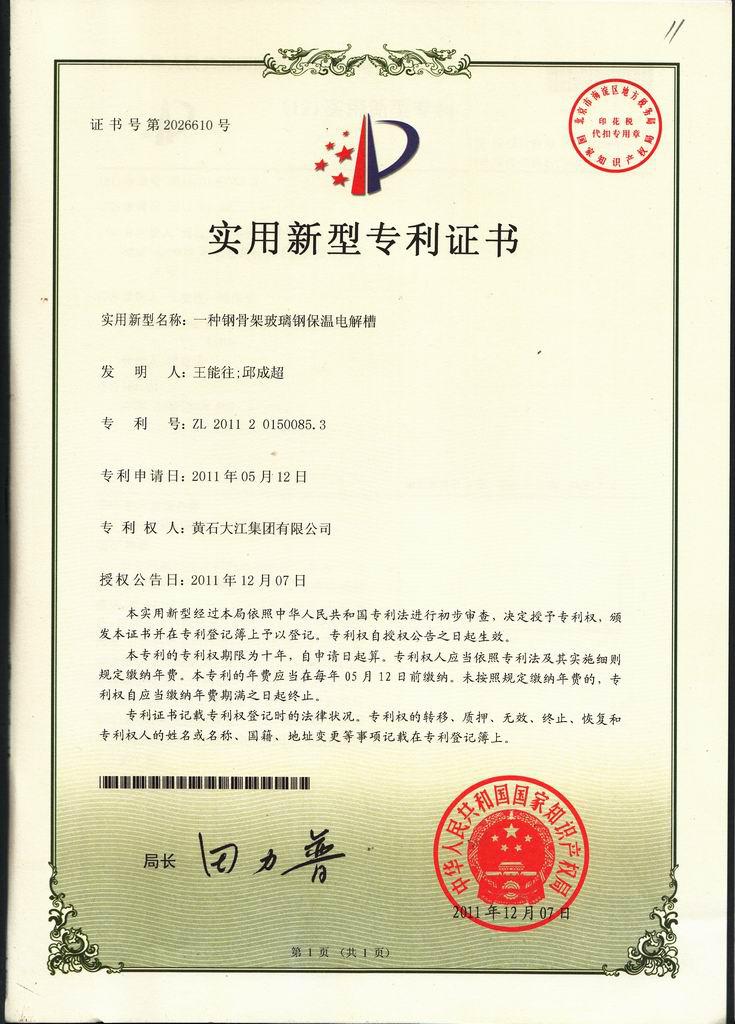 一、 實(shí)用新型電解槽(本公司專利產(chǎn)品ZL201120150085.3)